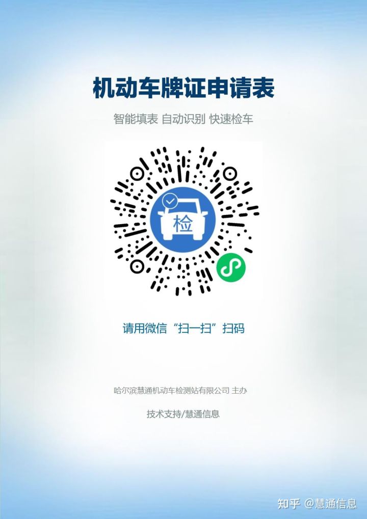 机动车牌证申请表小程序——由哈尔滨慧通信息技术有限公司运营;