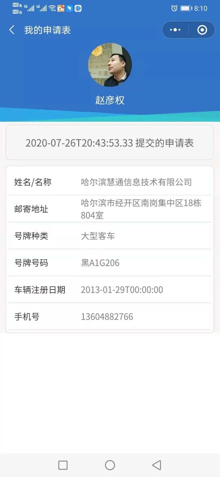 6.机动车牌证申请表——客户端管理后台