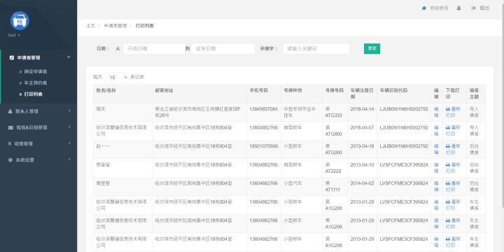 (2)打印列表》已打印的数据滚入到打印列表,在打印列表中可以编辑和重新打印申请表。