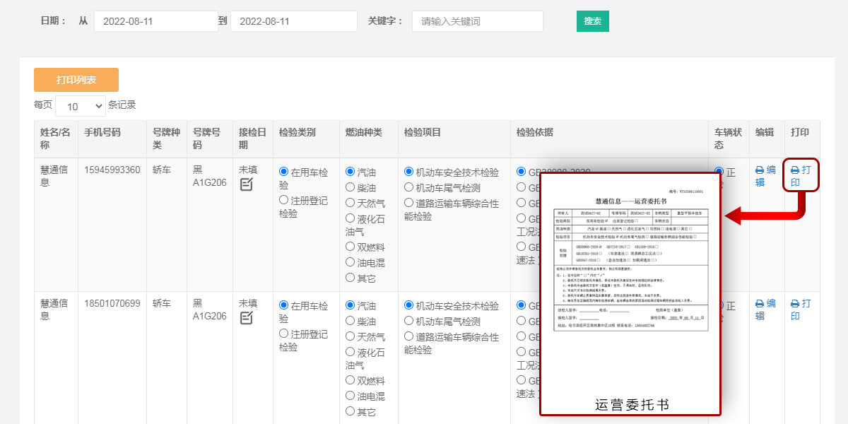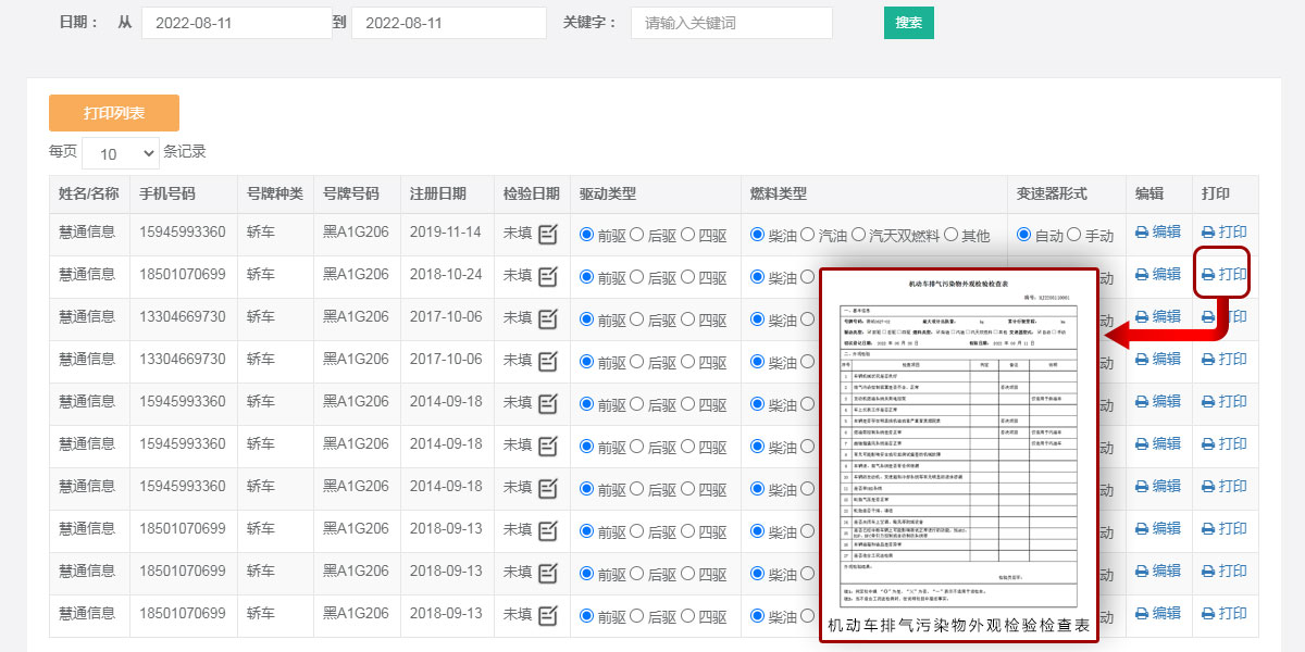 >> 排气检验表