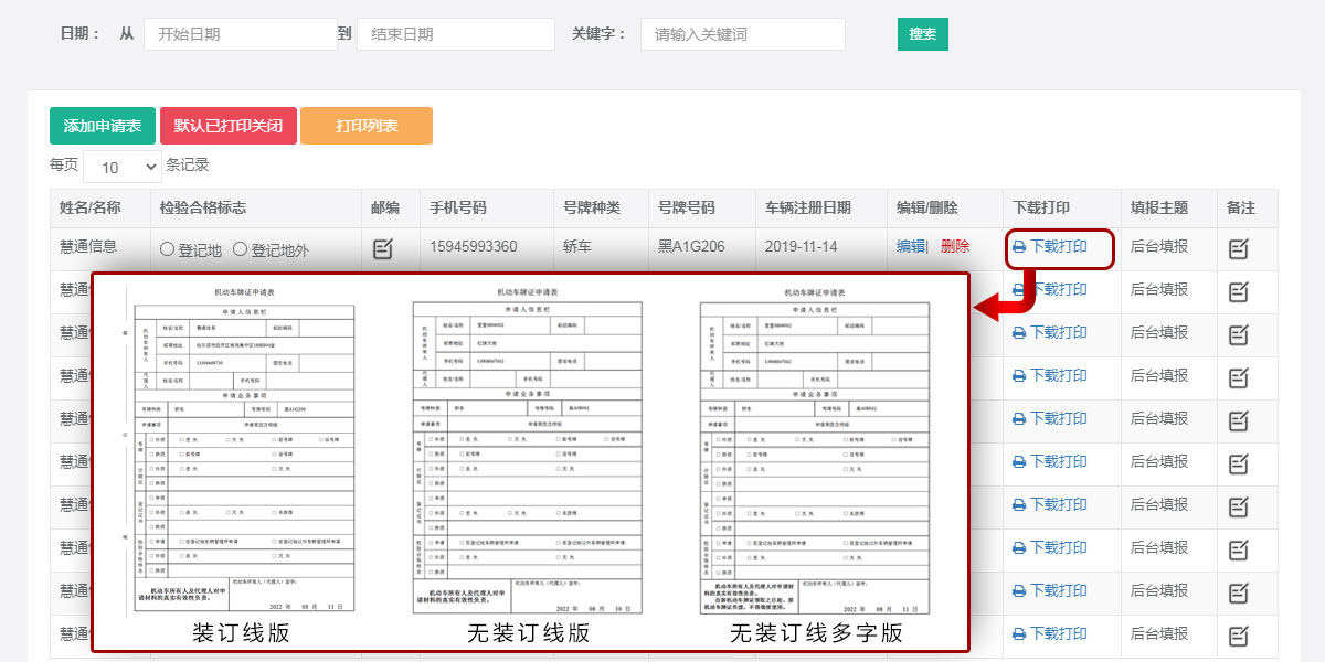 >> 牌证申请表