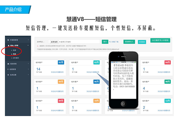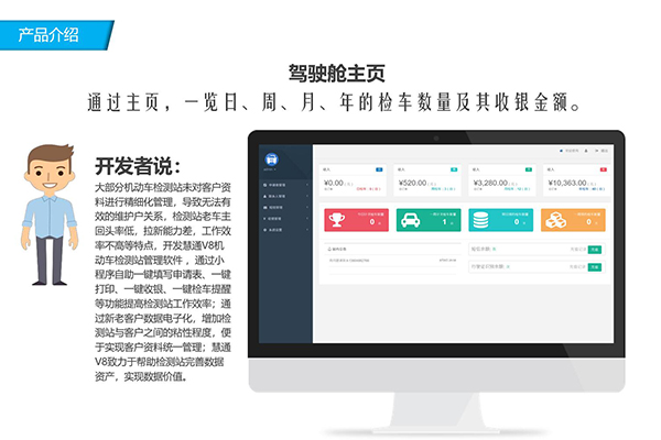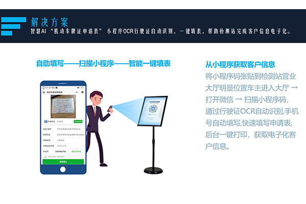 智慧AI“机动车牌证申请表”小程序+“慧通V8”后台,帮助检测站提高牌证申请表填写、票据打印、收银管理、检车短信提醒、保险短信提醒、数据电子化等环节的工作效率,提升客户关系管理能力;大部分机动车检测站未对客户资料进行精细化管理,导致无法有效的维护户关系,检测站老车主回店率低,拉新能力差,工作效率不高等特点;开发慧通V8机动车检测站管理软件 ,通过小程序自助一键填写申请表、一键打印、一键收银、一键检车提醒、一键保险提醒等功能提高检测站工作效率;通过新老客户数据电子化,增加检测站与客户之间的粘性程度,便于实现客户资料统一管理;通过优惠券分享,增加老客户粘稠度,增强拉新能力,保障检测站老客户不走,新客户不断,慧通V8致力于帮助检测站完善数据资产,实现数据价值。