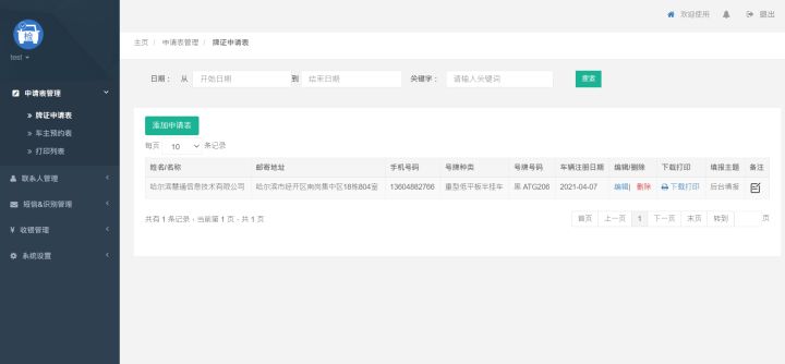 6.机动车牌证申请表——客户端管理后台
