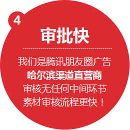 我们5000元起投放,腾讯官方,报价5万起;我们可投放本地县区,更精准定位,一百多个用户定向标签,免服务费,且曝光量更多;我们是腾讯朋友圈广告,哈尔滨渠道直营商,审核无任何中间环节,素材审核流程更快!
