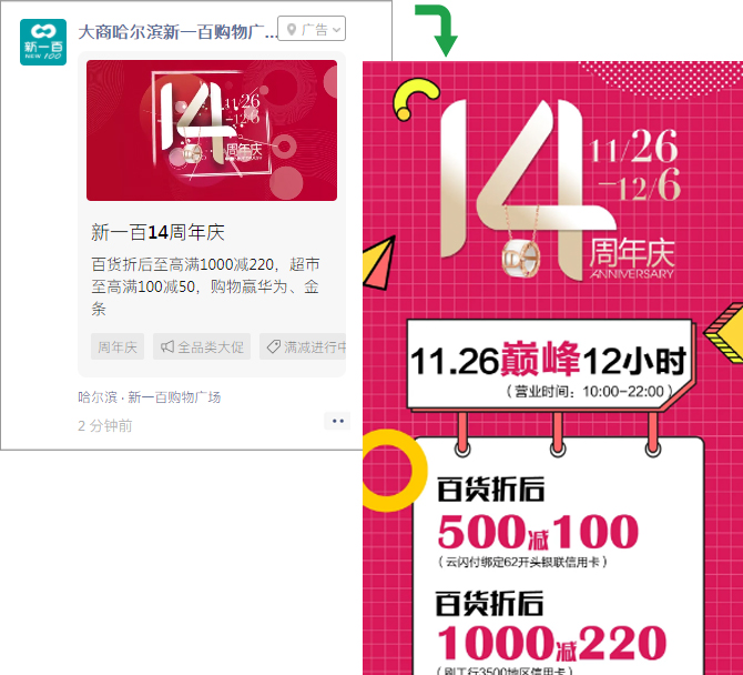 在朋友圈推广公众账号,让“关注”一键直达,广告的自然呈现也为品牌价值加分。广告融入生活场景,让用户知道、喜欢您的品牌,通过互动连接品牌与用户,提升品牌认知并传播。点击详情直接弹跳至活动邀约页面,发起在线邀约报名,简单直接。商家可以利用优惠活动为受众发放卡券,吸引人群到店消费。广告带有地址导航,将线上受众引流线下店面。
